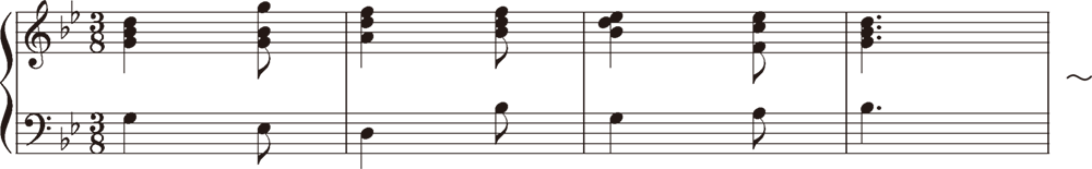 3.左手は和音、右手は1番上の旋律をそのまま弾く