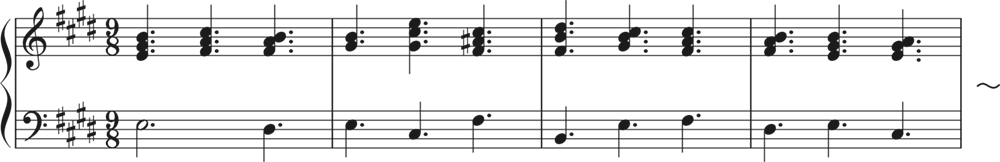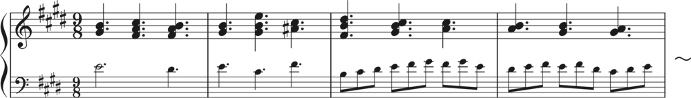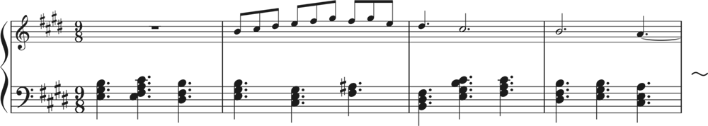 問題 8分の9拍子は大きな何拍子ですか? この曲の最低音を探しましょう。 譜例部分で転調のきっかけとなっている音を探しましょう。 第8小節~