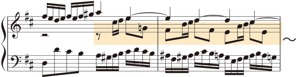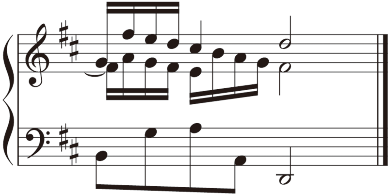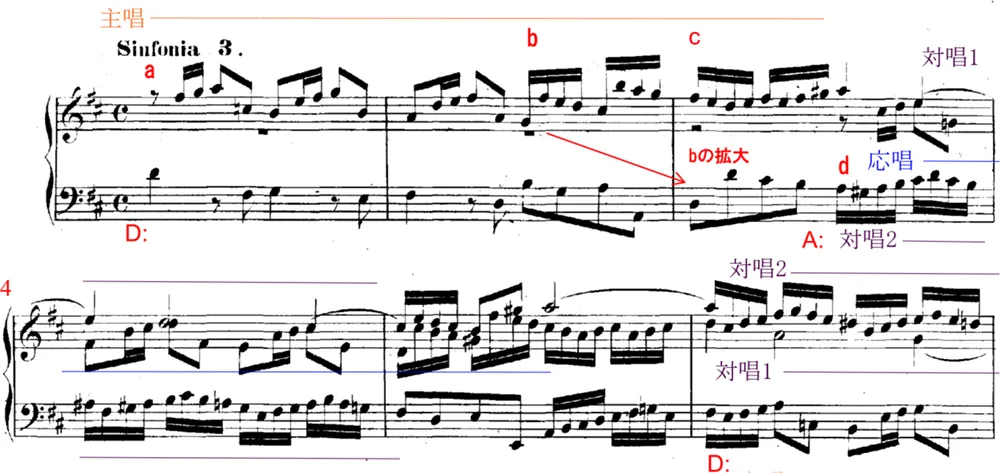 第3番は他のシンフォニアと比較しても高度なフーガで、2つの対位主題を持つ「三重対位法」で出来ています。間奏にも主題の動機が展開されています。また、ゼクエンツや転調も多く見られます。モティーフ単位にならず、フレーズ感を持って調性感豊かに、立体的にまとめましょう。