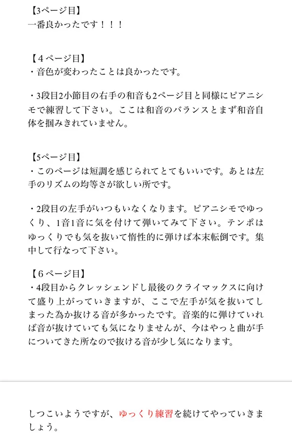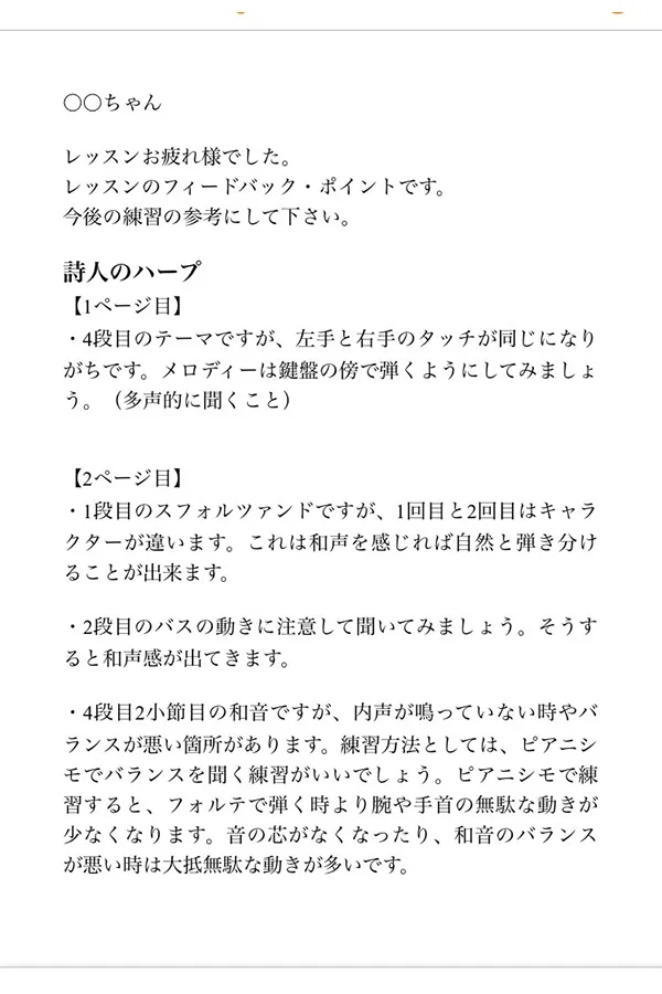 オンラインレッスン後は、メールでその日の内容をフィードバック