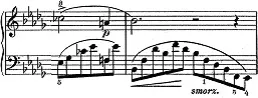 これはもっと後になって、ショパンが《ノクターン》作品9-1などでしばしば用い、探求した技法のひとつである。ここでは左手の5と4の指が交差する。以下の運指はショパンが書いたものである。