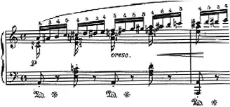 譜例8-2 ショパン:《12の大練習曲》(1830作曲) 右手の5-3、4-5の指が交差する。
