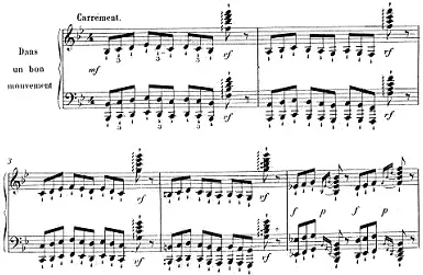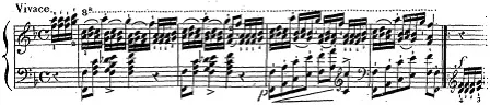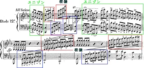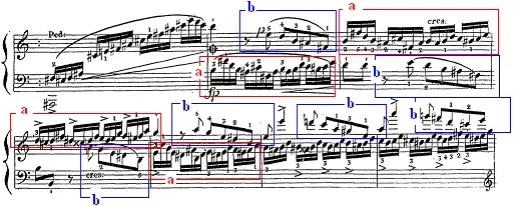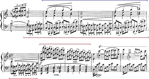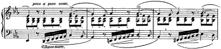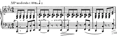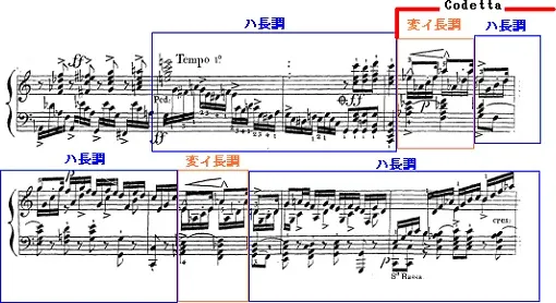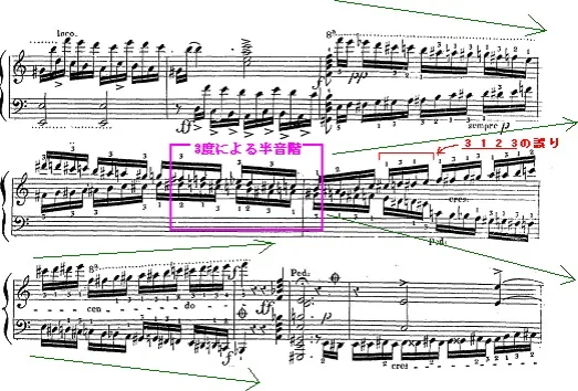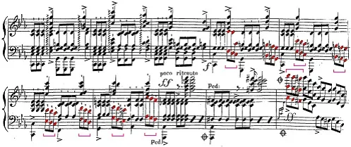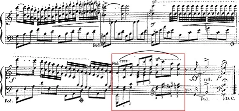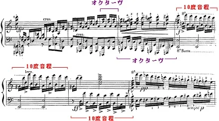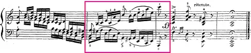 この部分はやや困難を伴うためか、poco ritenuto という表示がみられ、テンポを落として演奏するよう指示されている。