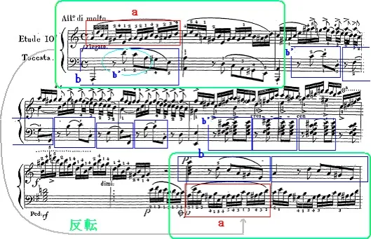 譜例1 第10番冒頭 a と b は三段目で上下が反転する。