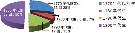 1770年代以前生 回数 J.-B.クラーマー 14 M.クレメンティ 14 J.-N. フンメル 5 計 33 1780年代生 回数 P.-J.-G.ヅィメルマン 6 F. カルクブレンナー 2 *** 計 8 1790年代生 回数 C.チェルニー 8 H.ベルティーニ 2 I.モシェレス 7 計 17 1800年代生 回数 ケスラー 11 F.ショパン 11 W.タウベルト 2 S.タールベルク 9 Ch.-V.アルカン 3 Th.デーラー 6 A.v.ヘンゼルト 7 A.コンツキ 4 H.ラヴィーナ 5 計 58