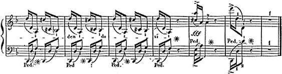 ヅィメルマンが参照を勧めているアルカンの《3つのロマンティックなアンダンテ》作品13の第2曲には、これと同様の技法が用いられている。