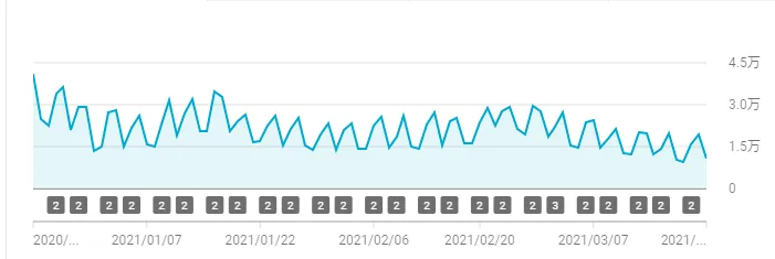 デイリーの推移で見てみるとこちらも過去に比べて良いということはなく、右肩で減少していることが確認できます。