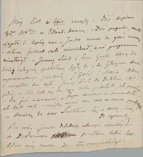 ショパン自筆の手紙、パリのヴォイチェフ・グジマワ宛て(エディンバラ、1848年10月3日)