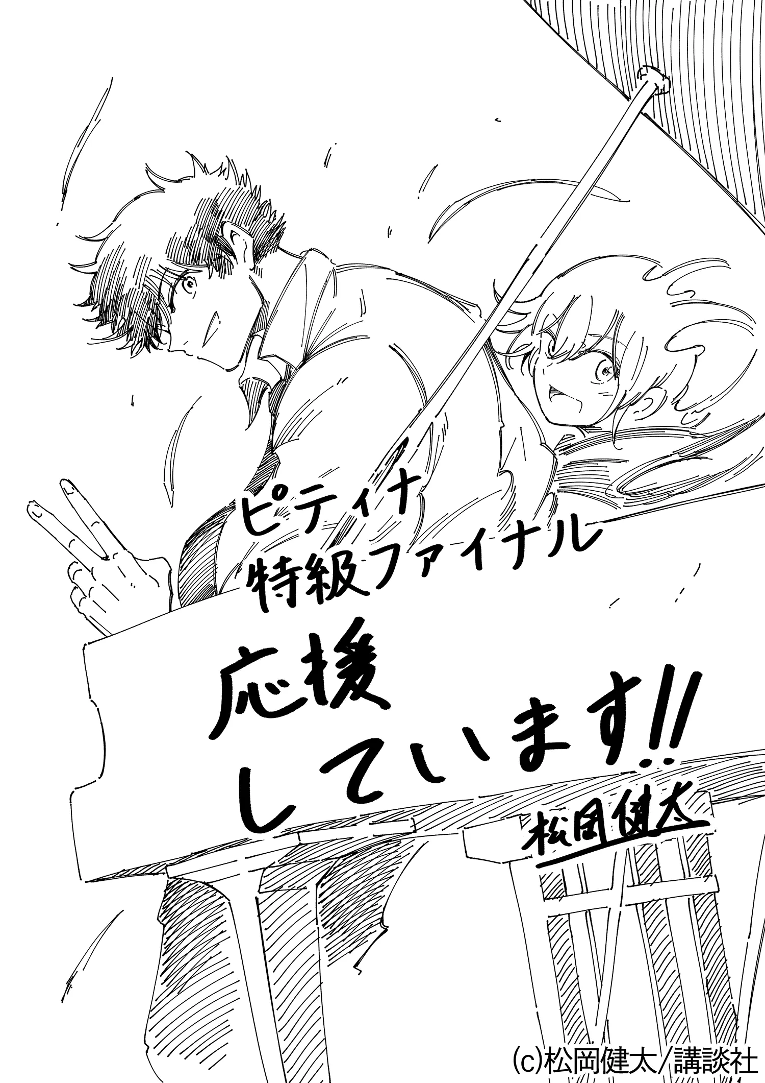 2021年度「特級」開催にあたり、今話題のピアノ漫画「左手のための二重奏」の作者である松岡健太先生より、応援イラスト・メッセージをいただきました。