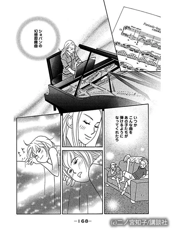 のだめの幼少期を描いた番外編「リカちゃん先生の楽しいバイエル」より。