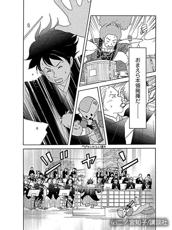 Sオケが作り上げようとする更なる伝説は…仮装オーケストラ!? 一方、千秋は帰国の迫った師匠・シュトレーゼマンと演奏家としての共演が決まり、燃えていて…? 作成協力:講談社新装版第3巻 登場曲 ガーシュウィン :ラプソディ・イン・ブルー