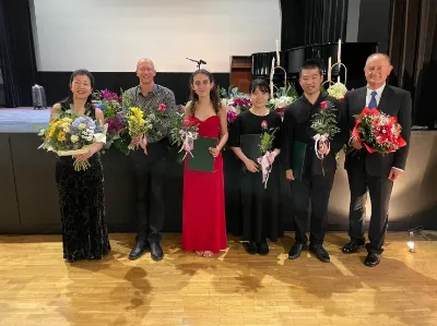 Kazimierz先生の家の近くにあるWikarowskaという施設にも小規模なホールがあり、こちらでも演奏会が行われていました。音楽祭の参加者4人でのミニコンサートを2回行い、施設の方からたくさんのお花をいただきました。