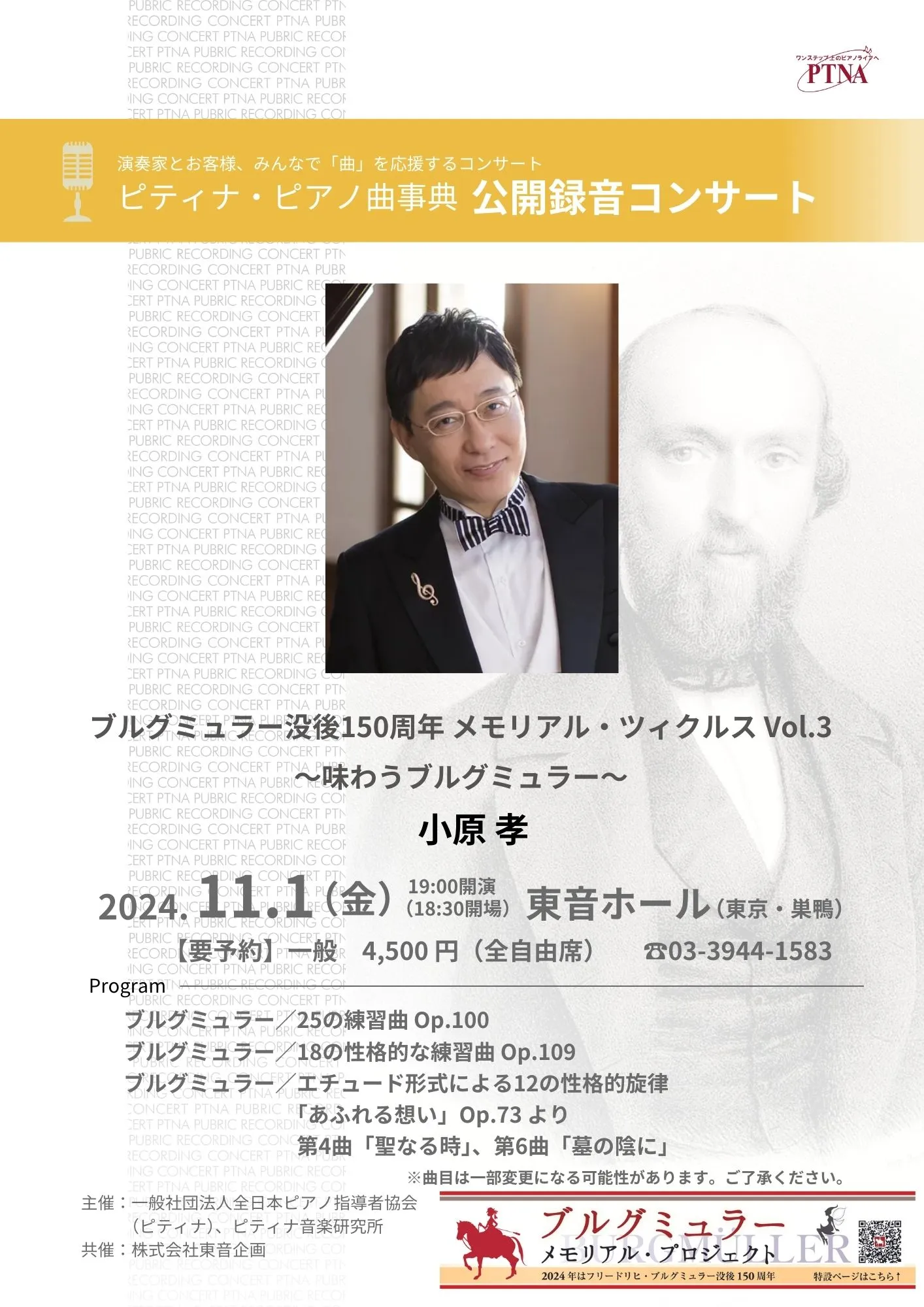 ピティナ・公開録音コンサート ブルグミュラー没後150周年メモリアル・ツィクルス Vol.3 ~味わうブルグミュラー~