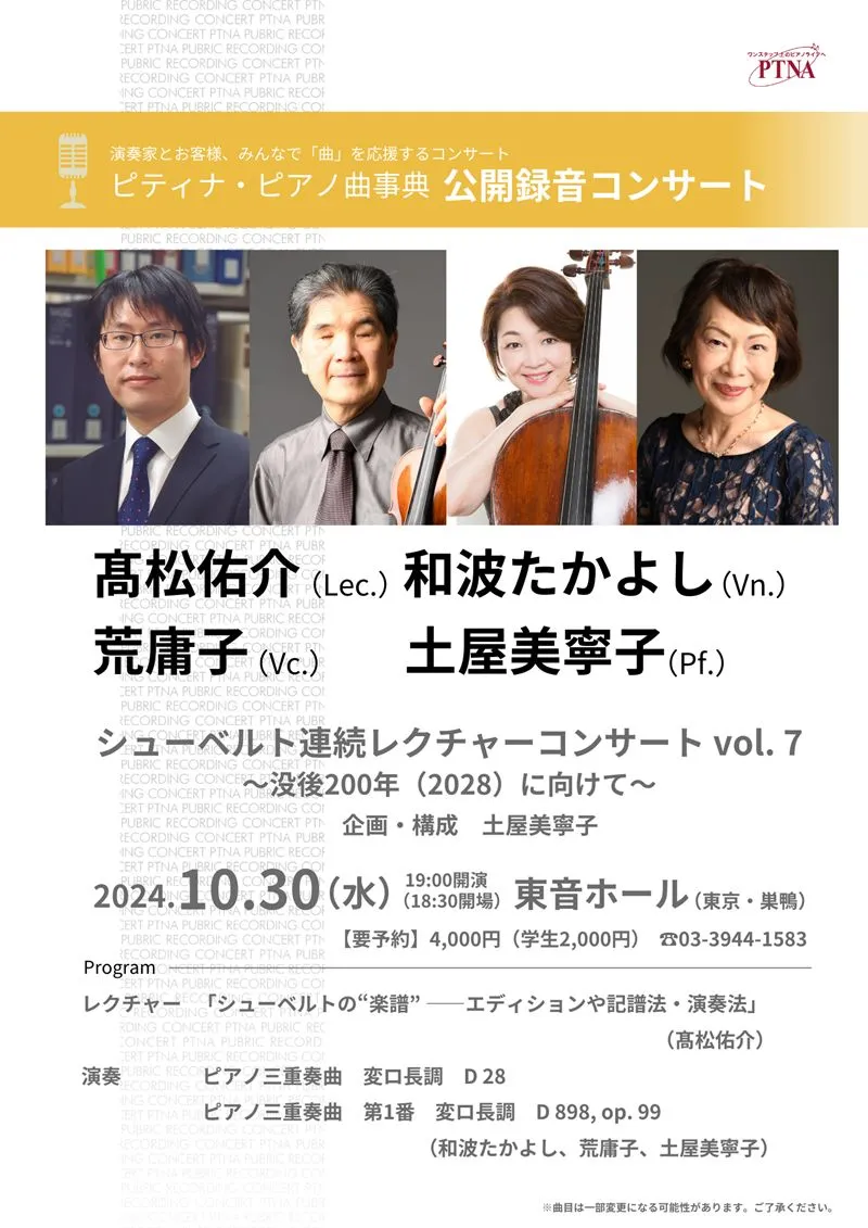 第299回ピティナ・公開録音コンサートシューベルト連続レクチャーコンサート vol. 7~没後200年(2028)に向けて~(企画・構成 土屋美寧子)