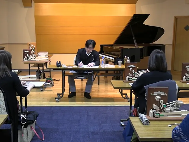 「ピアノのしくみ タッチ編」はピティナ・セミナーの一環で、鶴田圭寿さん(ピティナ調律会員)を講師として、先月(2025年1月)実施されたイベントです。受講者の方々は、一人一台に割り当てられたグランドピアノのアクションモデルを使って、ピアノの音が鳴る仕組みを知るとともに、その構造が「タッチ」に及ぼす影響を詳細に見ることができました。仕組みを知ることで「アクションの異常」がある場合に気づくことができますし「良し悪し」の理由を考えることもできます。本セミナーはピティナ・eラーニングで記録映像をご紹介予定です。