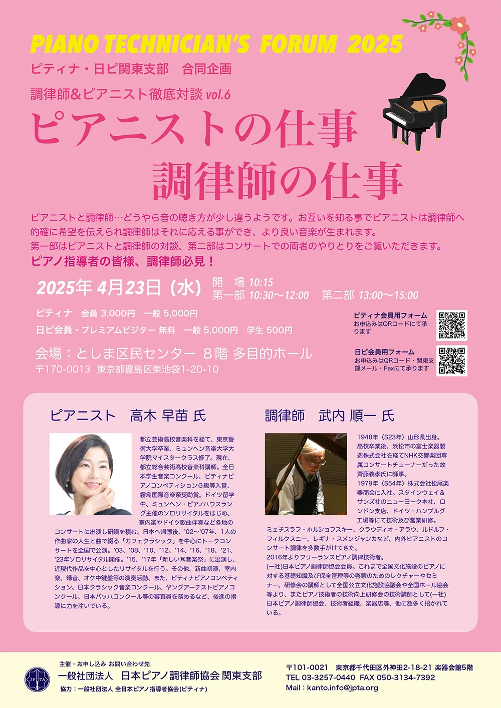 より良いコミュニケーションをめざして 2025年4月23日実施予定 調律師×ピアニスト徹底対談 vol.6 ピアニストの仕事 調律師の仕事