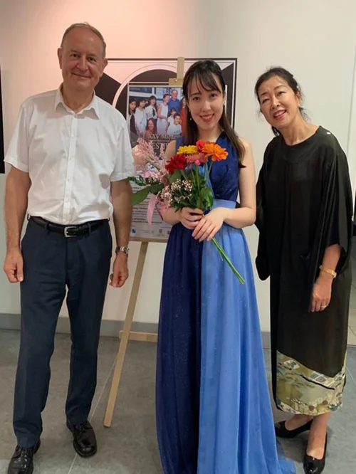 リサイタル終演後に主宰の Kazimierz 先生と奥様のトモコ先生と。
